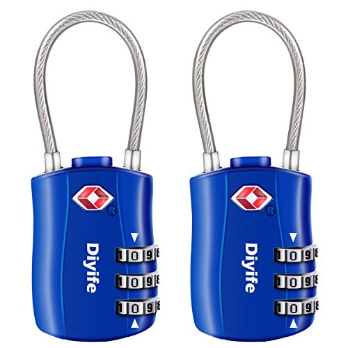 Diyife TSA Luggage Locks, [Newest Version][2 Packs] 3-Digit Security Padlock, Combination Padlocks, Code Lock for Travel Suitcases Luggage Bag Case etc.(Blue)