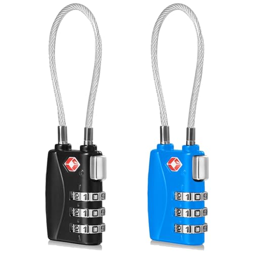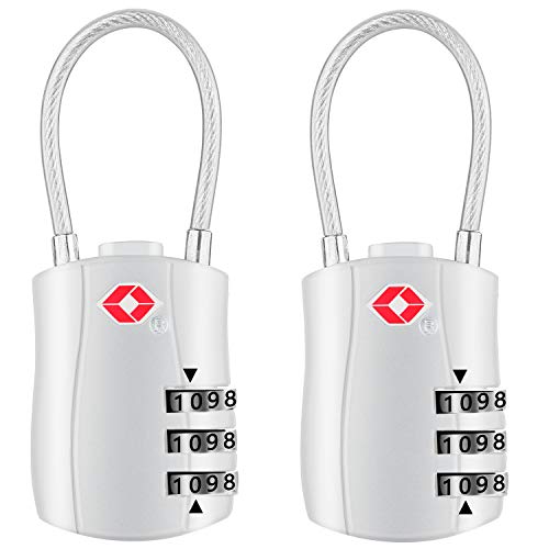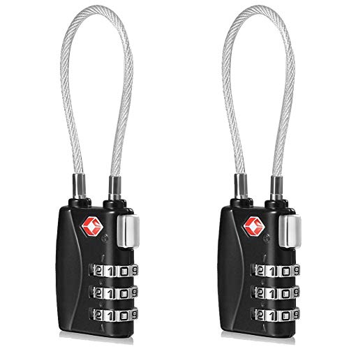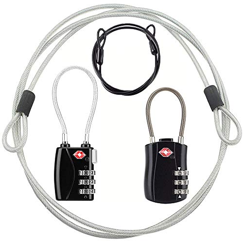 TSA Luggage Locks Pack, Digit Combination Padlockss and Steel Cable Combination Travel Security Lock, Luggage Travel Lock Coded Lock … (2 Pack)