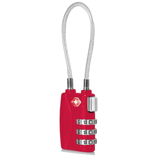 CFMOUR TSA Locks - 1, 2, 3, 4, 5, 6 Pack 3-Dial Travel Cable Combination Security Padlock for Suitcase Luggage Case Bag Code Lock - Red (Pack of 1)