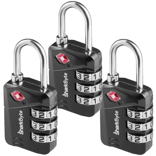 SharkByte TSA Approved Luggage Locks, 3-Dial Security Travel Combination Padlock, Travel Lock for Suitcases Luggage Case, Backpack, Travel Bag, Gym Locker, Code Small Padlock, Suitcase Locks (3 Pack)