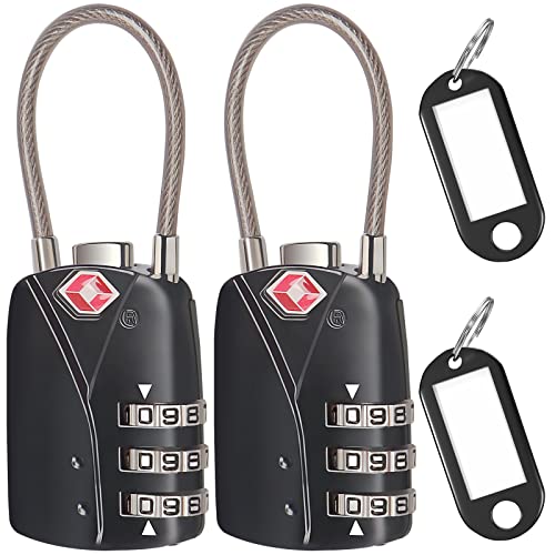 OW-Travel TSA Approved Luggage Locks Suitcase Locks (2 Pack Black) 3 Digit Flexible Cable Suitcase Padlock. Travel Bag Combination Luggage Padlocks for Suitcases. TSA Travel Lock for Bags and Cases