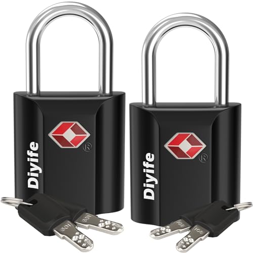 Diyife TSA Luggage Locks 2 Pack - High Security Suitcase Padlocks with 4 Keys Total, Flexible Long Shackle Travel Lock for Suitcases, Bags & Cases (Black)