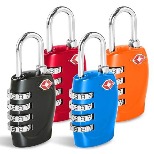 CFMOUR TSA Suitcase Locks - 1, 2, 3, 4, 5, 6 Pack 4-Dial Security Travel Combination Padlock for Suitcases Luggage Case Bag Code Lock - Black&Blue&Red&Orange (Pack of 4)