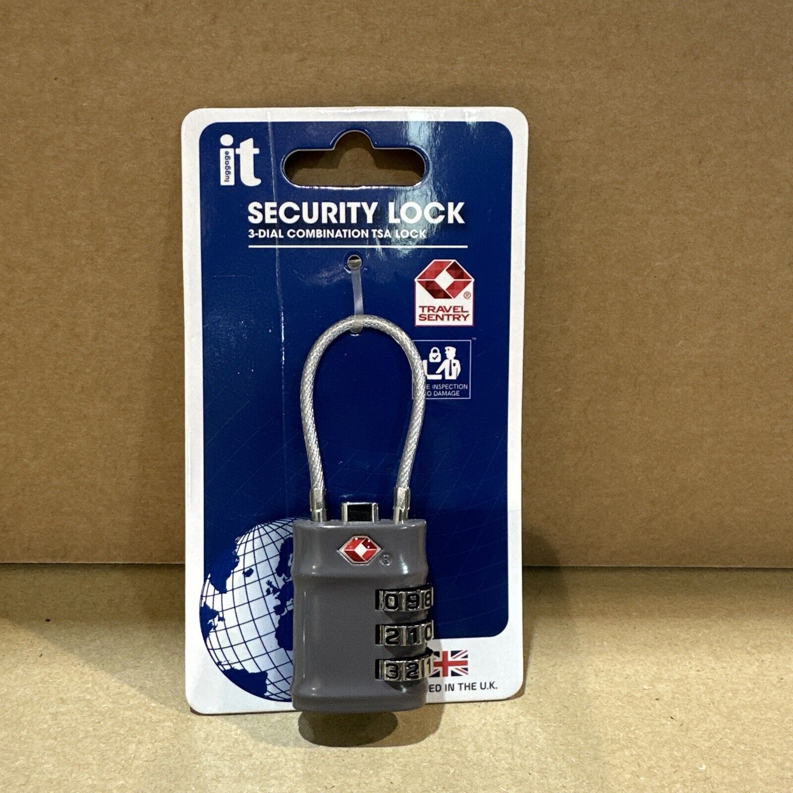 Luggage It Security Lock 3 Dial Combination TSA Lock In Grey - New In Packaging