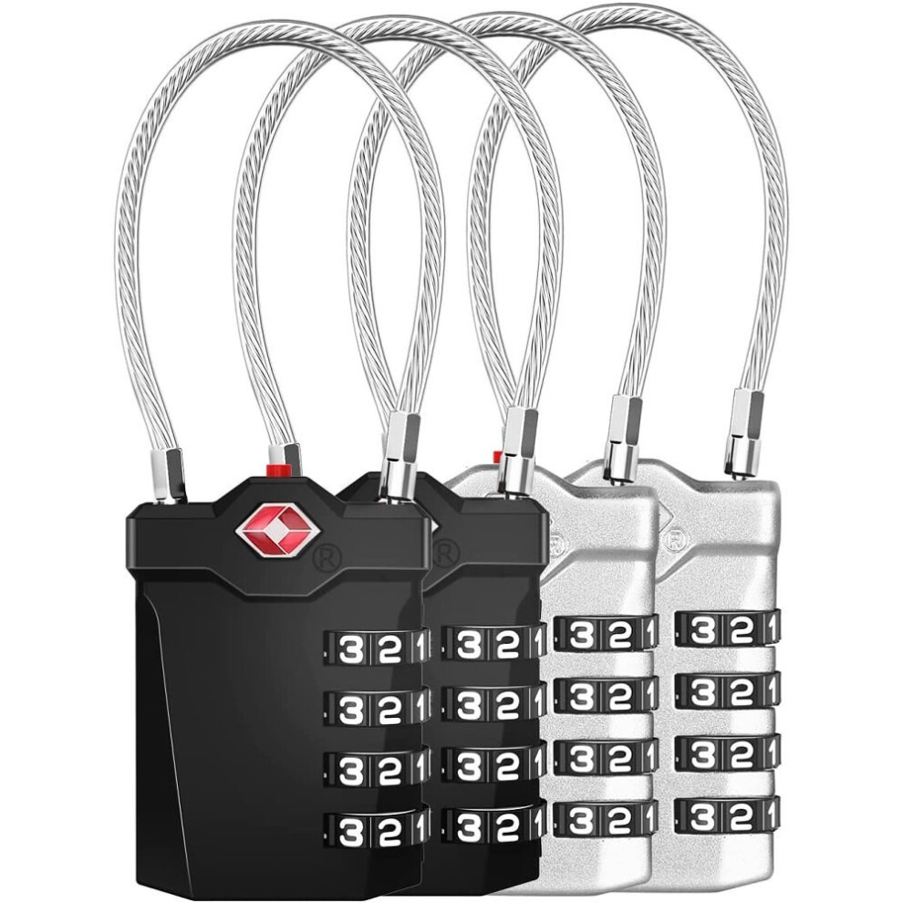 SharkByte TSA Suitcase Locks - 4-Dial Security Travel Combination Padlock, Flexible Cable Travel Lock for Suitcases Luggage Bag Gym Locker