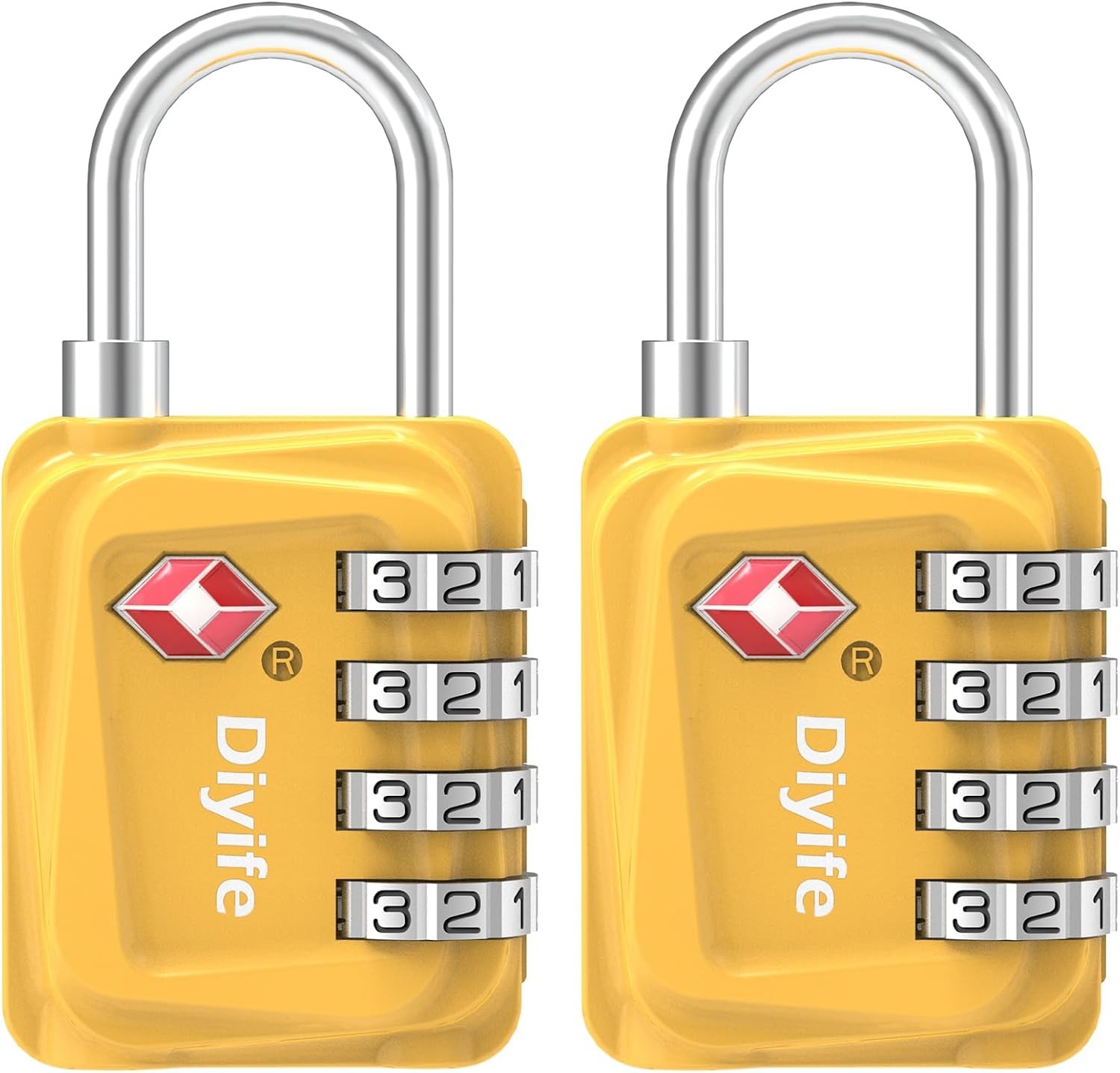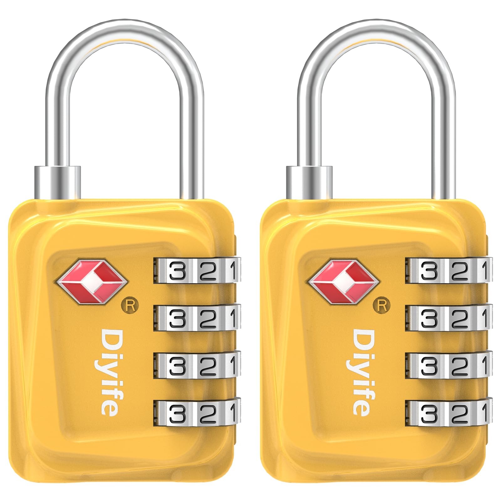 TSA Luggage Locks, [Updated Version] [2 Packs] Diyife 4-Digit Security Yellow