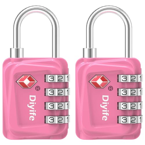 TSA Luggage Locks, [Updated Version] [2 Packs] Diyife 4-Digit Security Padlock, Resettable Zinc Alloy Combination Padlocks, Small Code Lock for Travel Suitcases Luggage Bag Case (Pink)