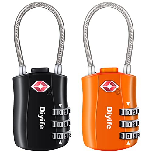 TSA Luggage Locks, [Newest Version][2 Packs] Diyife 3-Digit Security Padlock, Combination Padlocks, Code Lock for Travel Suitcases Luggage Bag Case etc.(Black&Orange)