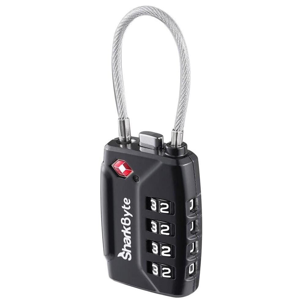 SharkByte TSA Suitcase Locks - 4-Dial Security Travel Combination Padlock, Flexible Wire Cable Travel Lock for Suitcases Luggage Case Travel Bag Gym Locker Code Small Padlock (Pack of 1)