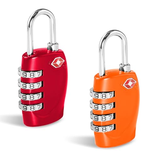 OW-Travel TSA Approved Luggage Locks Suitcase Locks (2 Pack Orange) 4 Digit Security Suitcase Padlock. Travel Bag Combination Luggage Padlocks for Suitcases. TSA Travel Lock for Bags and Cases