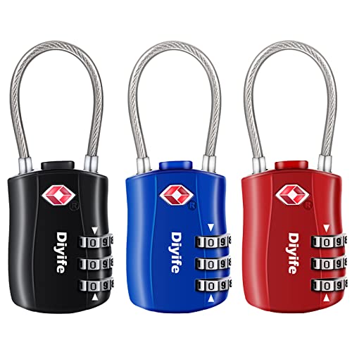 Diyife TSA Luggage Locks, [Newest Version][3 Packs] 3-Digit Security Padlock, Combination Padlocks, Code Lock for Travel Suitcases Luggage Bag Case etc.(Black&Blue&Red)