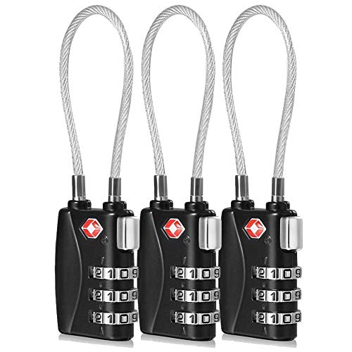 CFMOUR TSA Locks - 1, 2, 3, 4, 5, 6 Pack 3-Dial Security Cable Travel Combination Padlock for Suitcase Luggage Case Bag Code Lock - Black (Pack of 3)