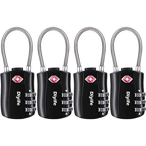 Diyife TSA Luggage Locks, [Newest Version][4 Packs] 3-Digit Security Padlock, Combination Padlocks, Code Lock for Travel Suitcases Luggage Bag Case etc.(Black)