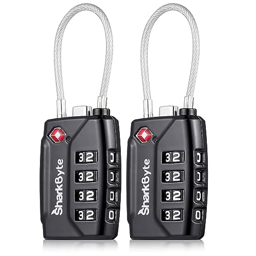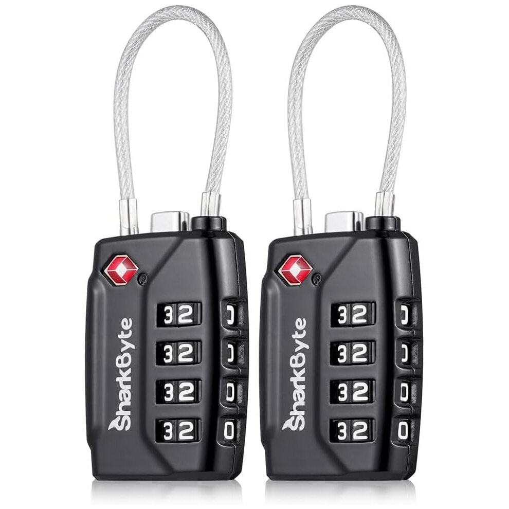 SharkByte TSA Approved Suitcase Locks - 4-Dial Security Travel Combination Padlock, Flexible Cable Wire Travel Lock for Suitcases, Luggage Locks, Travel Bag Gym Locker Small PadLock with code (2 Pack)