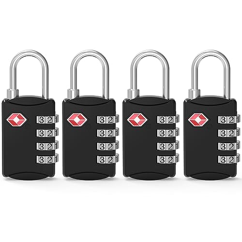OW-Travel Luggage Locks TSA Approved (4 Pack Black) 4 Digit Suitcase Padlocks. TSA Locks Approved Security Backpack Combination Padlock for Suitcase, Case, Luggage, Bag, Gym Locker