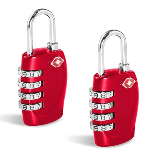 CFMOUR TSA Suitcase Locks - 1, 2, 3, 4, 5, 6 Pack 4-Dial Security Travel Combination Padlock for Suitcases Luggage Case Bag Code Lock - Red (Pack of 2)