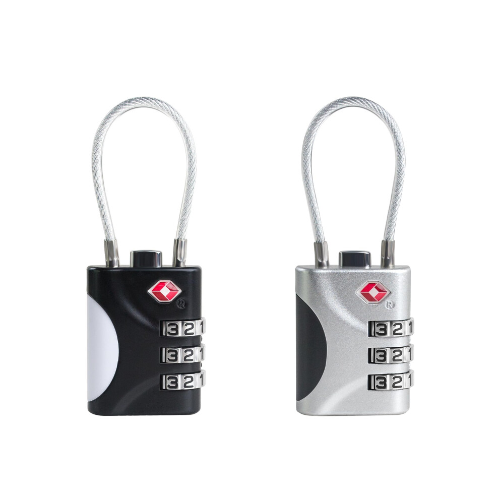 UP Security TSA Approved Luggage Locks - Small Combo Travel Padlock with Cable, TSA 007 Suitcase & Backpack Security, Durable & Easy to Use (Black+Sil