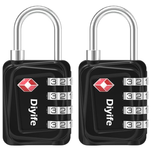 Diyife TSA Luggage Locks, [Updated Version][2 Packs] 4-Digit Security Padlock, Combination Padlocks, Code Lock for Travel Suitcases Luggage Bag Case etc. Black