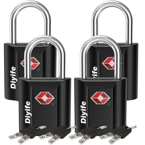 TSA Luggage Locks with Keys, [4 Pack] Diyife Security Suitcase Padlocks with Keys Heavy Duty Zinc Alloy Travel Padlock Small Suitcase Locks with 4 Keys for Luggage Travel Suitcase Bag Case (Black)