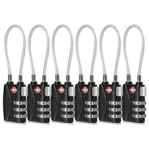 CFMOUR TSA Locks - 1, 2, 3, 4, 5, 6 Pack 3-Dial Security Cable Travel Combination Padlock for Suitcase Luggage Case Bag Code Lock - Black (Pack of 6)