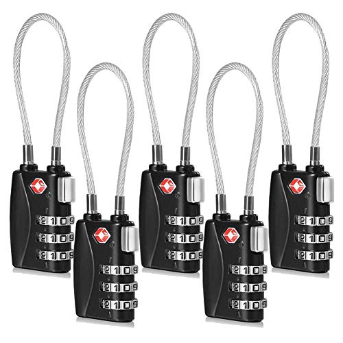 CFMOUR TSA Locks - 1, 2, 3, 4, 5, 6 Pack 3-Dial Security Cable Travel Combination Padlock for Suitcase Luggage Case Bag Code Lock - Black (Pack of 5)