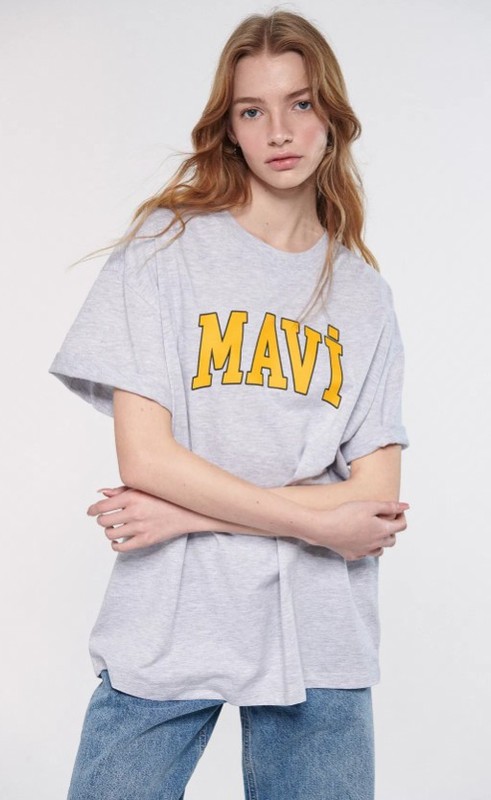 MAVI Women's Logo Print T-Shirt, Tees, PRINTED TSHIRT; Gray, One Size