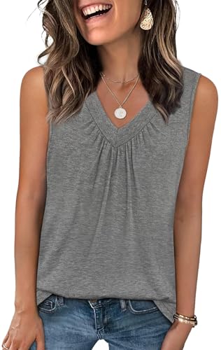 Haslike Women Summer Casual Vest Tank Tops Loose Fit V Neck Sleeveless Tshirt Top (Gray,S)