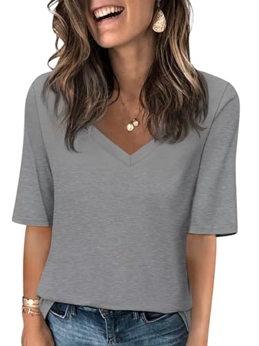 AirMood Women V Neck T Shirts Summer Casual Half Sleeve Tops Loose Fit Tees Tshirt (Gray,S)