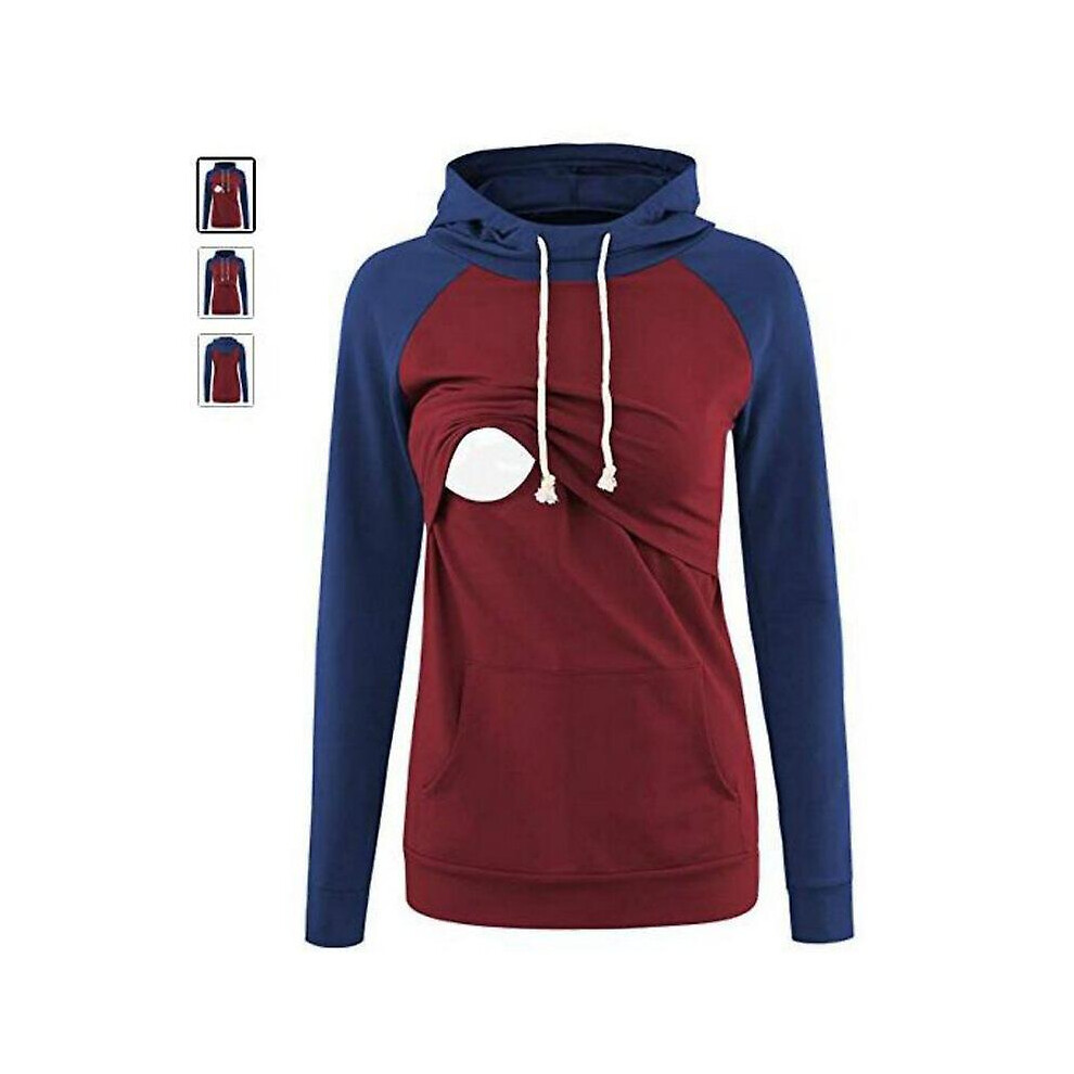 (Wine red 2, S) Maternity Clothes New Maternity Long Sleeve Tshirt Casual Maternity Clothing Clothes For Pregnant Women Maternity Dress