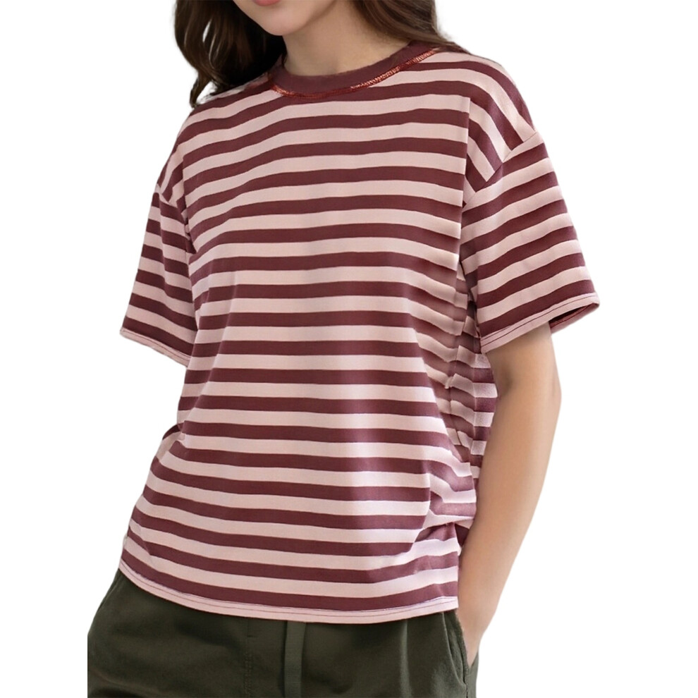(S, Ginger) Striped Summer Tshirt for Maternity Women Loose Casual Contrast Short Sleeve Round Neck Tops