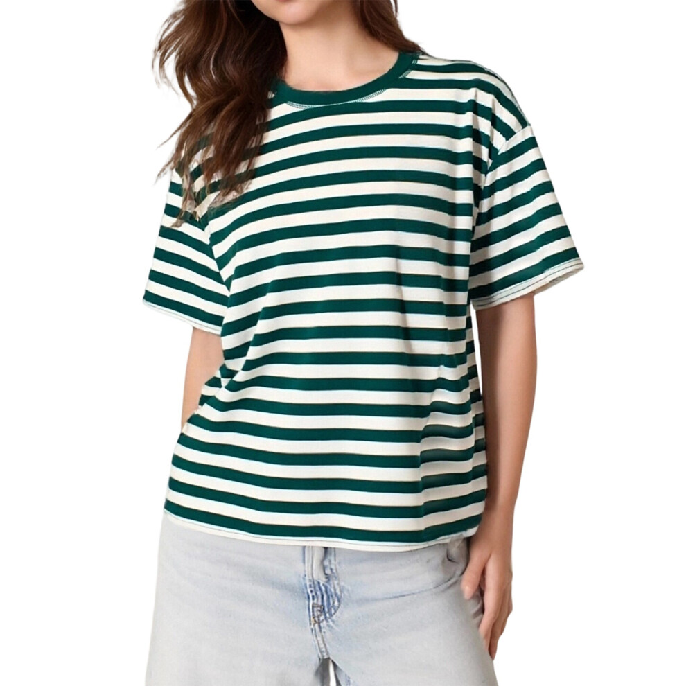 (L, Dark Green) Striped Summer Tshirt for Maternity Women Loose Casual Contrast Short Sleeve Round Neck Tops