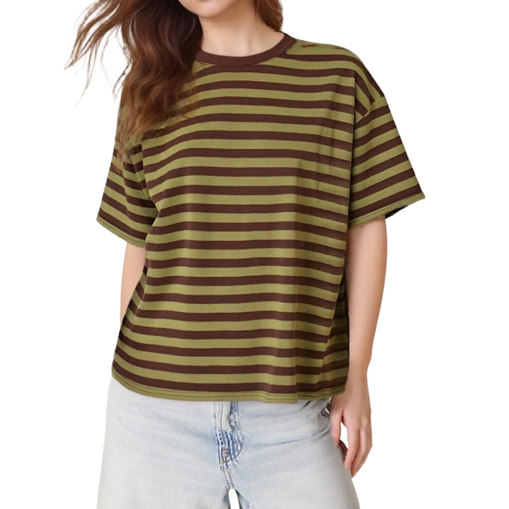 (S, Dark Green) Striped Summer Tshirt for Maternity Women Loose Casual Contrast Short Sleeve Round Neck Tops
