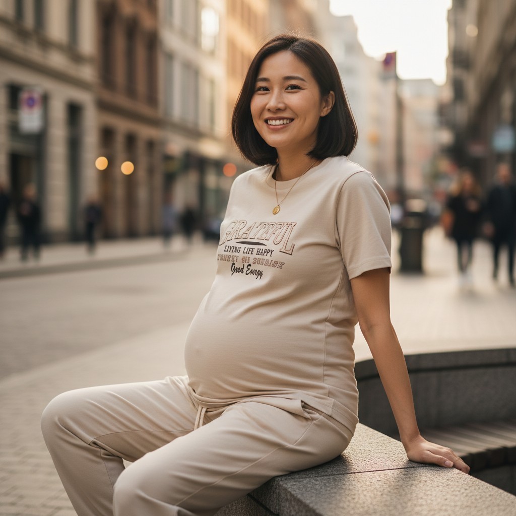 Missguided Maternity T-Shirt Women' UK Size XS Beige Graphic Print 100% Cotton
