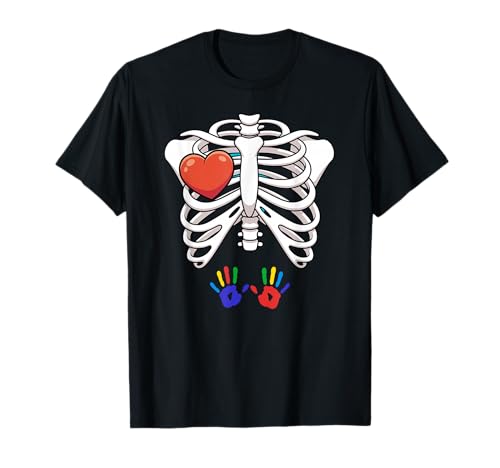 Skeleton Ribcage Baby Handprints Funny Halloween Maternity T-Shirt