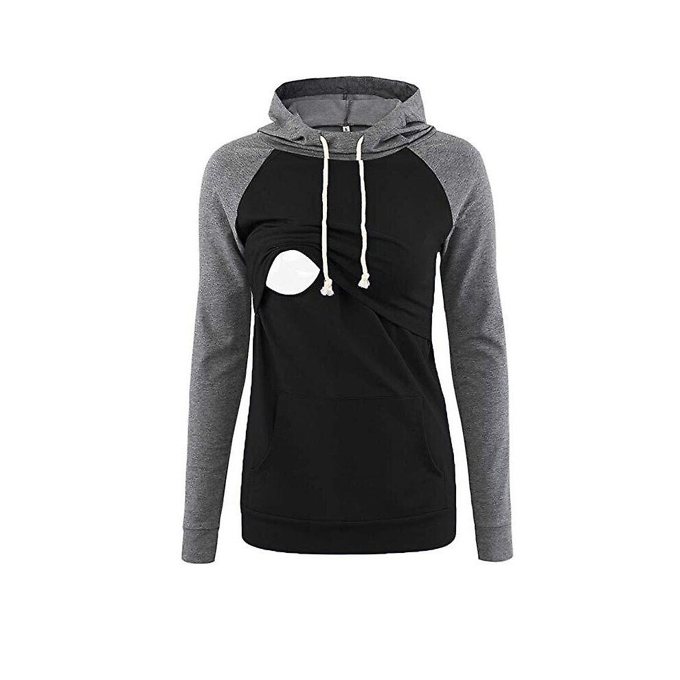 Love2Mi Women’s Maternity Tops Long Sleeve Loose Fit Maternity T-Shirt Split Side Breastfeeding Top Maternity Clothing Grey
