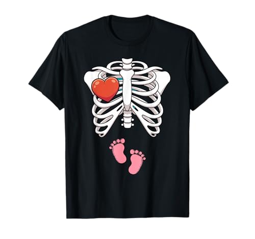 Skeleton Ribcage Pink Baby Footprints Halloween Maternity T-Shirt
