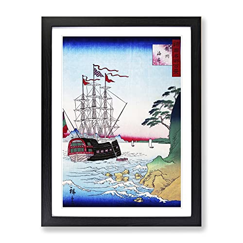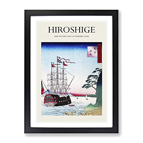 Ship Off The Coast Of Tsushima By Utagawa Hiroshige Exhibition Museum Asian Japanese Framed Wall Art Print, Ready to Hang Picture for Living Room Bedroom Home Office Décor, Black A3 (34 x 46 cm)