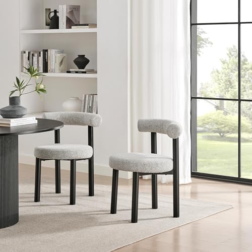 Furniturebox UK Set of 2 Isola Pale Grey Fabric Dining Chairs (Pair) with Black Metal Legs, Contemporary Tub Silhouette, Curved Barrel Backrest, Modern Minimalist Accent Seating for Kitchen or Home