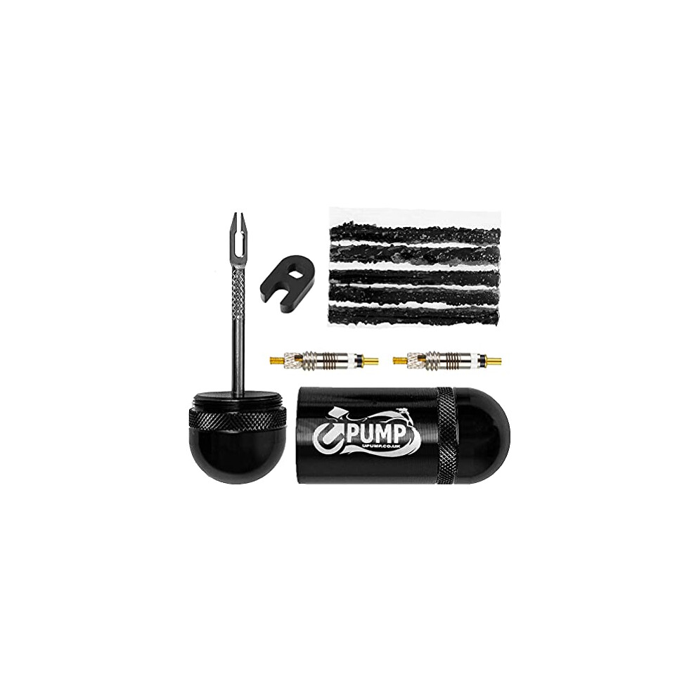 Upump Emergency Bicycle Tubeless Tyre Repair Kit - For Road and MTB Bikes Bar Ends or Storage Canister + 2 x Presta Valve Cores + Core Removal Tool