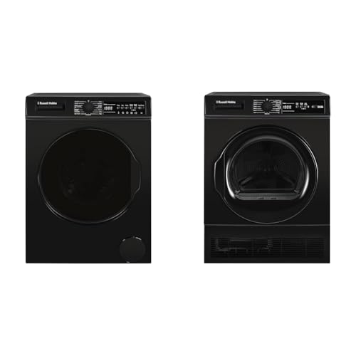 Russell Hobbs Freestanding Washing Machine, 9kg Capacity, 1400 rpm, 15 Programmes, Eco Technology & Freestanding Condenser Dryer Electric Tumble Dryer 15 Programmes 8kg Capacity 3 Heat S