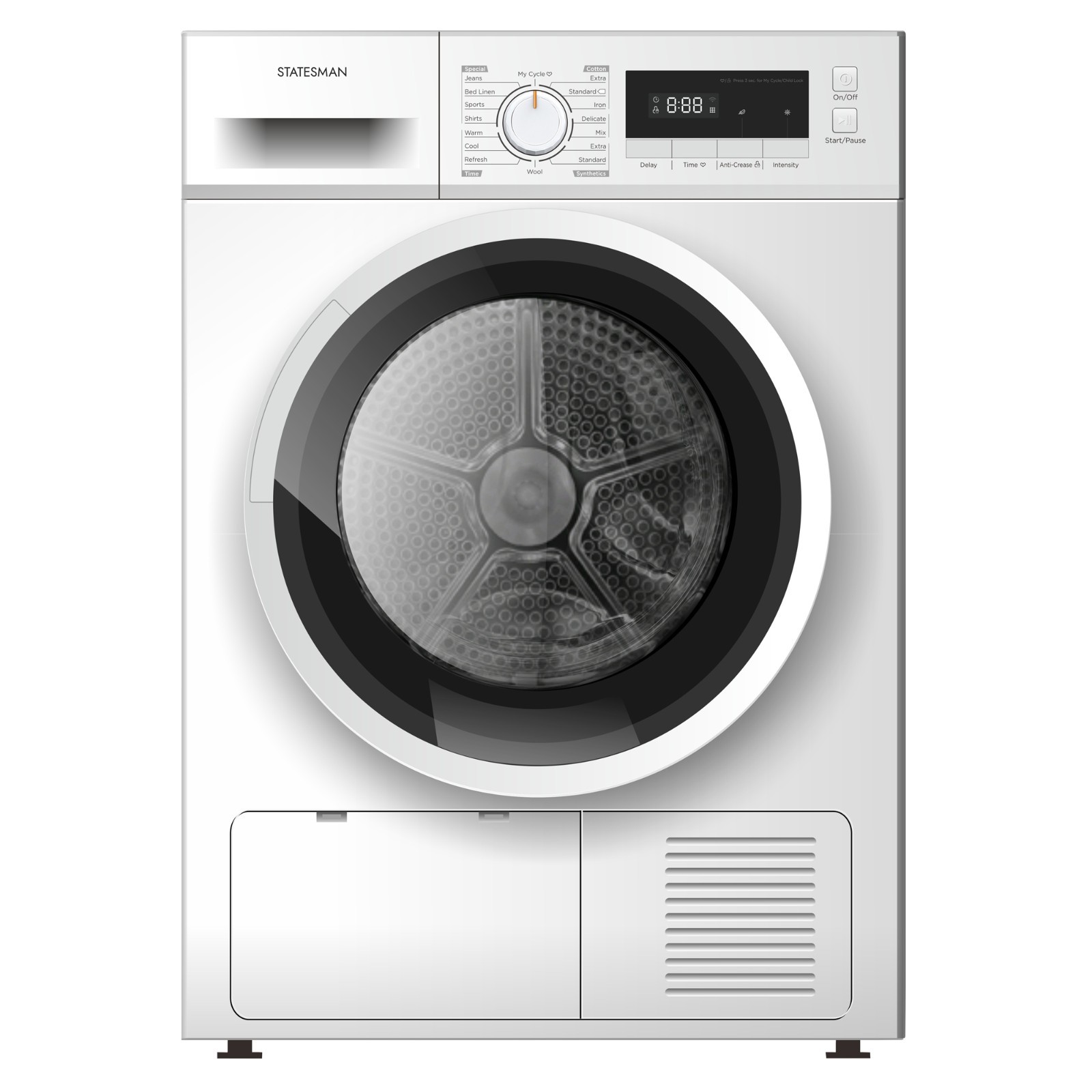 Statesman TCM08W Freestanding Condenser Tumble Dryer, 8kg Load Capacity, Anti Crease Function, Digital LED Display, Add Garment Function, Interior Light, White