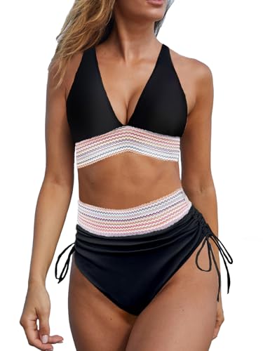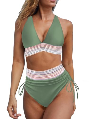HAWILAND Women's High Waisted Bikini Sets Push Up Padded Bikini Tops & Tummy Control Swimwear Bikini Bottoms Two Piece Swimsuits Bathing Suits Summer Swimming Costume
