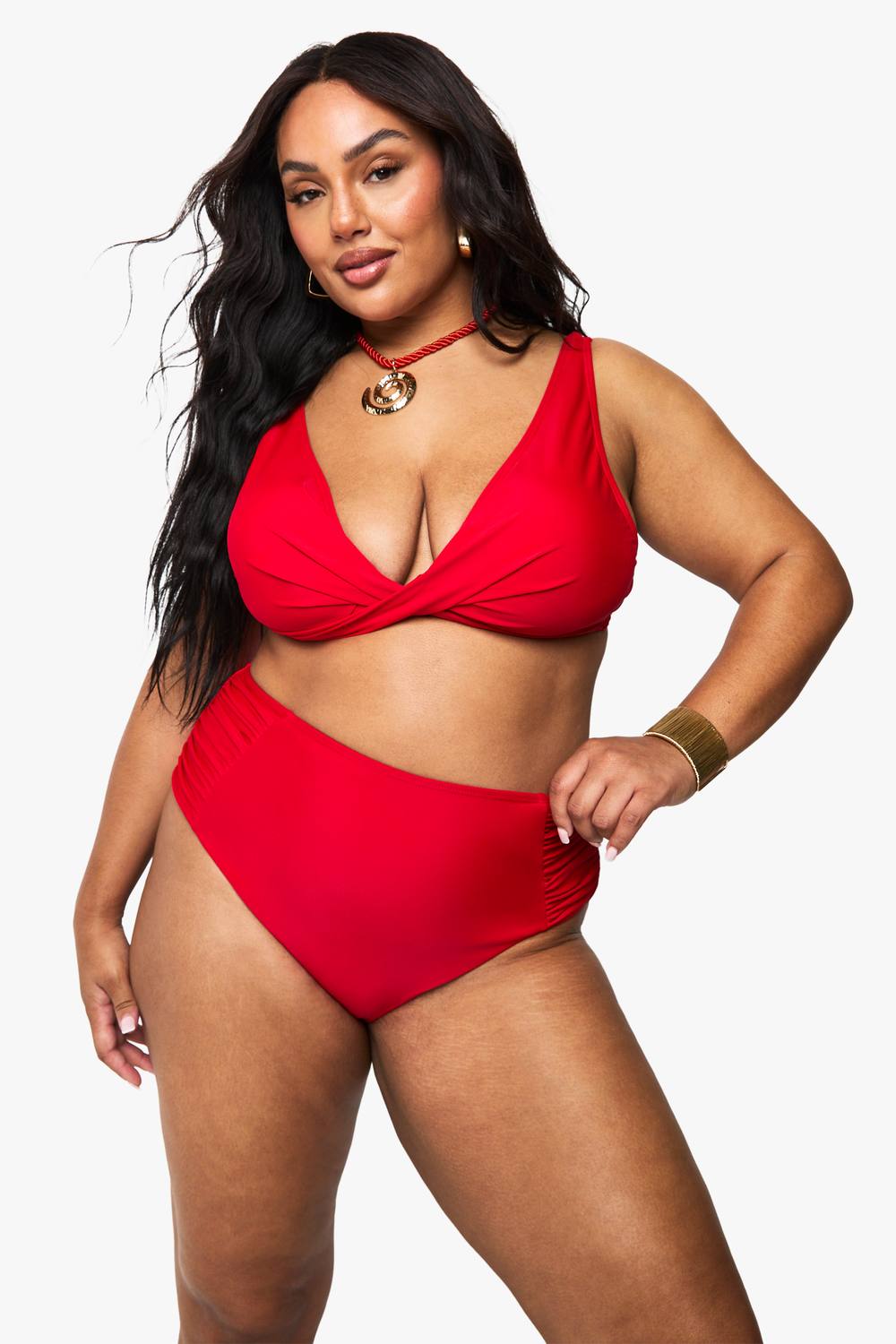 Womens Plus Tummy Control Bikini Bottoms - Red - 28, Red