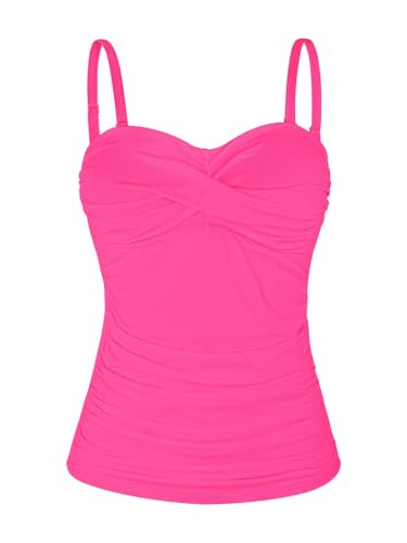 Ocean Blues Women's Hot Pink Twist Bandeau Swimsuit Top Ruched Tummy Control Tankini Top Size Small