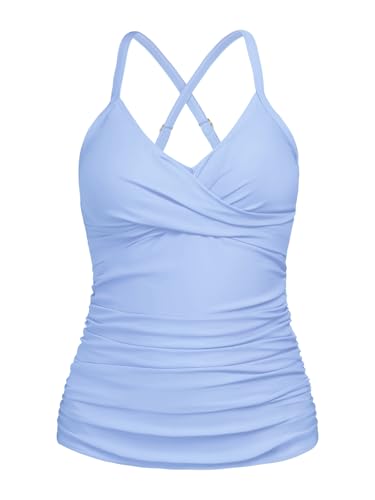 Ocean Blues Women's Sea Blue Tummy Control Tankini Swimuit Top Push Up V-Neck Tankini Top Only Size XX-Large