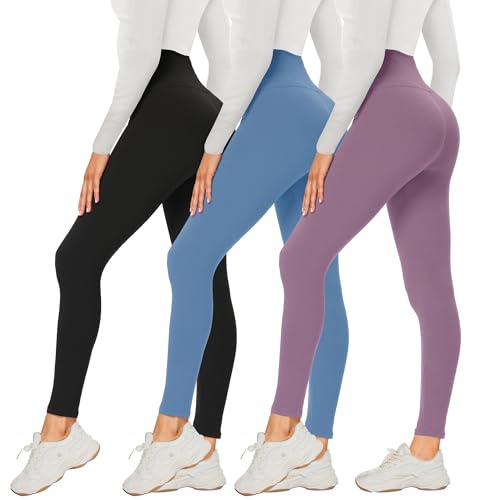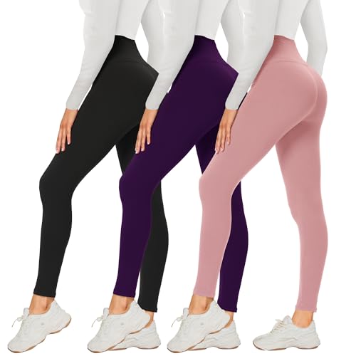 DDOBB 3 Pack Leggings for Women High Waisted Black Leggings Tummy Control Stretchy Pants Trousers for Gym Fitness Yoga Running Regular&Plus Size(Black + Violet + Morandi Pink)