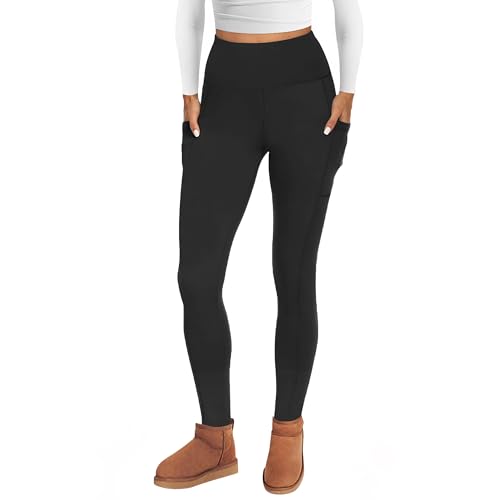 AMIYOYO Thermal Leggings Women with Pockets High Waist Fleece Lined Leggings Warm Winter Fur Yoga Pants Tummy Control Trousers Soft Stretchy Tights Workout Yoga Gym Running Black