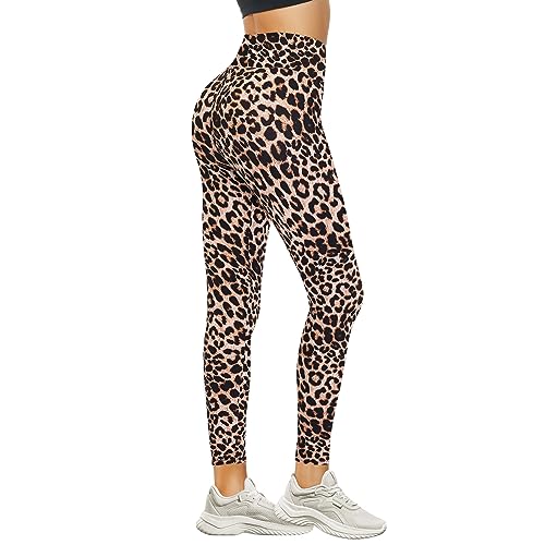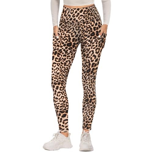 DDOBB Leggings for Women High Waisted Black Leggings Tummy Control Stretchy Pants Trousers for Gym Yoga Running Sport Regular&Plus Size(D-Leopard,S-M)