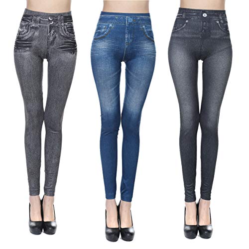 High Waisted Ankle Length Thick Leggings for Women Slim Fit Stretchy Pencil Pants Imitation Jeans Printed Leggings Soft Elastic Tummy Control Skinny Trousers for Ladies Girls,L