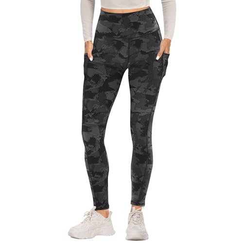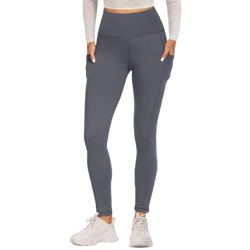 Vimbloom Leggings for Women UK with Pockets Yoga Pants High Waisted Opaque Sports Gym Leggings Tummy Control Workout Trousers (Grey M
